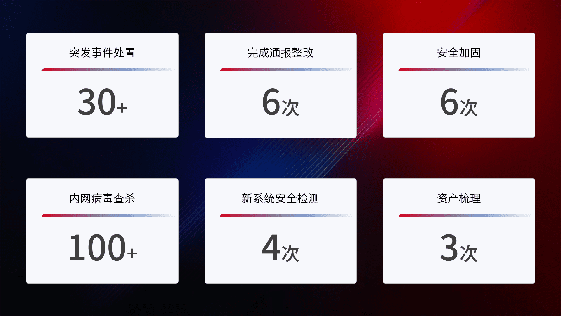 网络安全加固与风险管理:通过技术加固手段,,,如加强区域隔离,,缩减攻击内网横向移动的范围;优化现有网络安全管理制度,,,,降低网络威胁暴露面,,,减少被黑客攻击的可能性。。